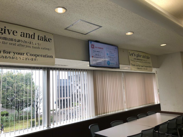 | (9)生協食堂 | 43インチ4画面 | 学生、教職員 | 利用者数0.9万人/月 生協の営業期間あり |