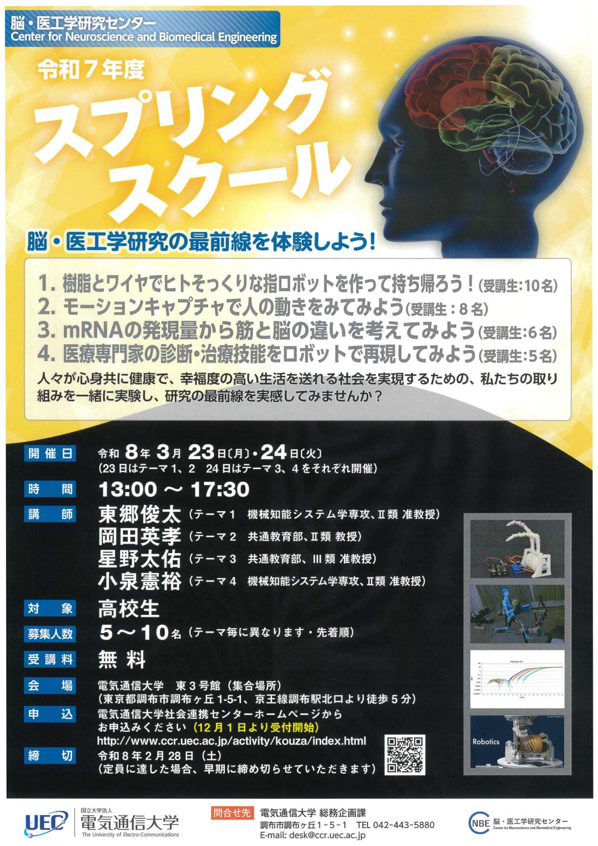 | スプリングスクール 「脳・医工学研究の最前線を体験しよう!」 | |