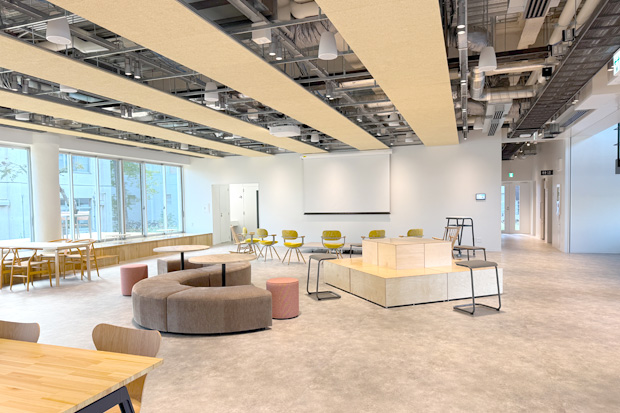 - 広場に大きく開けたスペースを設け、開放的なコワーキングスペースにより研究者、スタッフ、学生、企業の方、卒業生、地域の方との交流を促進