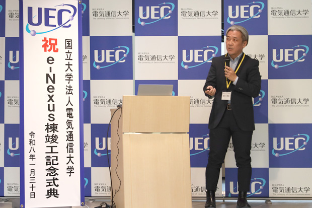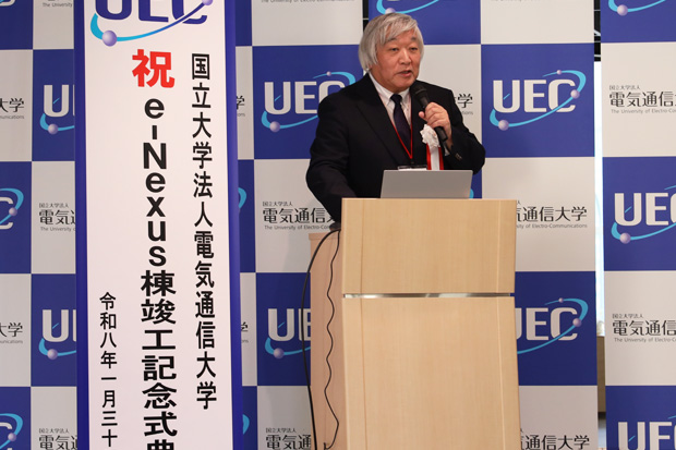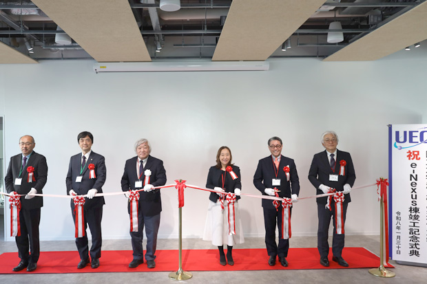 国立大学法人電気通信大学(学長 田野俊一 以下「本学」)は、本学キャンパス内に整備した地域中核・特色ある研究大学強化促進事業(J-PEAKS)の中核的拠点施設「e-Nexus(イー・ネクサス)棟」の竣工を記念し、2026年(令和8年)1月30日(金)、竣工記念式典を執り行いました。