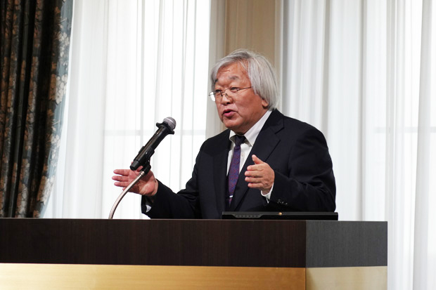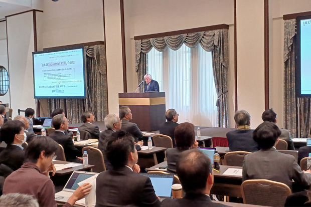 前半の部では、最初に文部科学省高等教育局の石橋晶大学振興課長による開会挨拶および基調講演があり、続いて行われた採択大学ビジョンセッションでは、採択6大学それぞれが、目指す大学院改革のビジョンを発表、本学からは田野俊一学長が登壇し、「日本版Industrial PhDによる未来共創リーダー育成拠点」について発表しました。