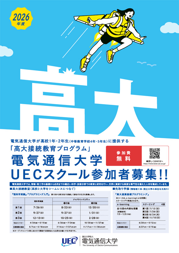 | お問い合わせ窓口 | 電気通信大学 高大接続教室 メールアドレス:uecsc-contact@kodai.uec.ac.jp |