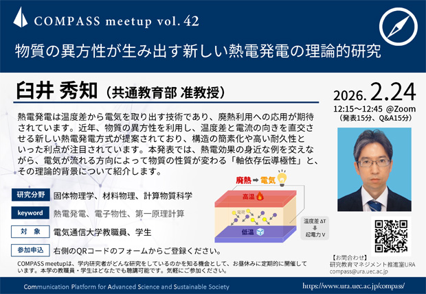 | COMPASS meetup vol.42「物質の異方性が生み出す新しい熱電発電の理論的研究」 | ||