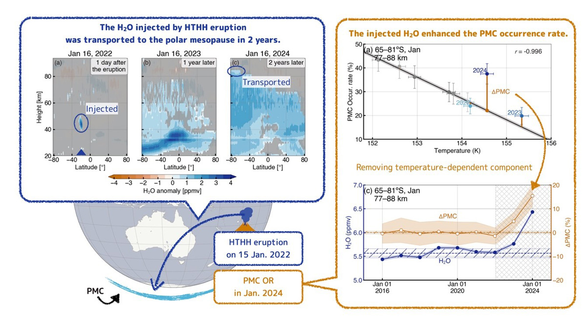 論文名: Responses of polar mesospheric clouds to water vapor anomalies caused by the 2022 Hunga Tonga-Hunga Ha'apai eruption