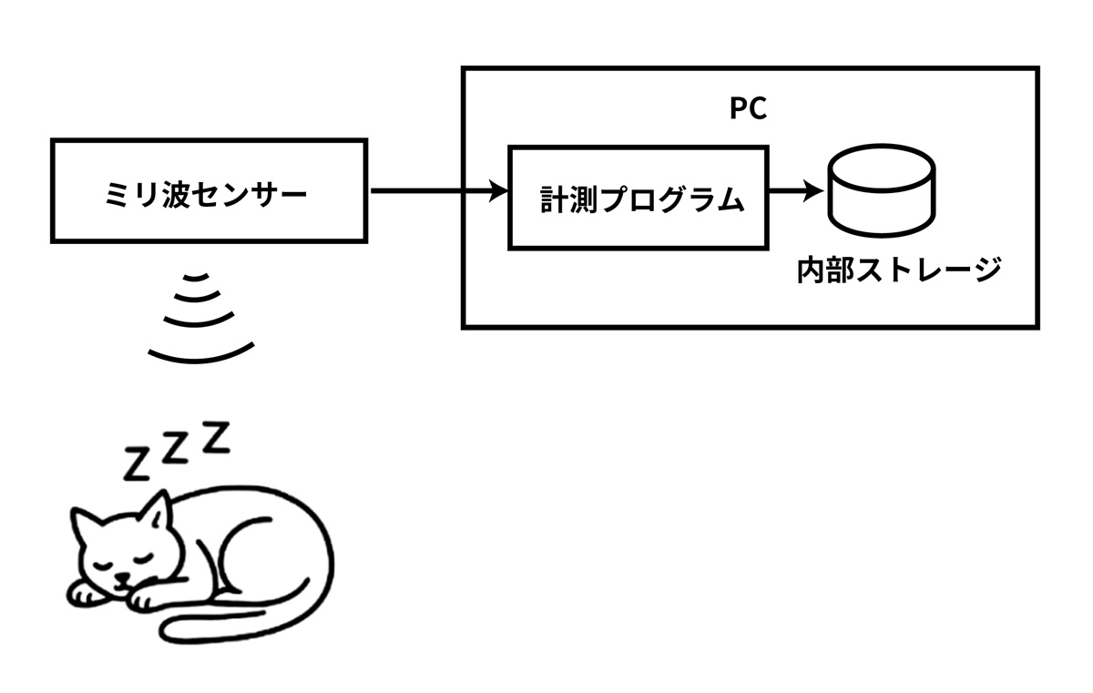 猫は狭く暗い場所を好むため、従来のカメラによる画像解析では、寝床や箱の中に潜り込んでいる際の計測が困難でした。また、室内カメラの常時稼働に対する飼い主のプライバシー保護も課題となっていました。