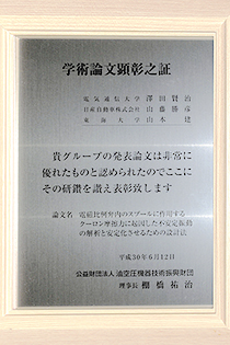 本論文賞は、日本フルードパワーステム学会、日本機械学会および計測自動制御学会の3学会から推薦を受けた優秀な論文に対して贈呈されるものです。