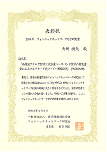 この賞は、今年度の当研究会において、発表時において30歳未満の講演者によって発表された全ての研究論文の中から最も優秀な論文および発表として選ばれたものです。