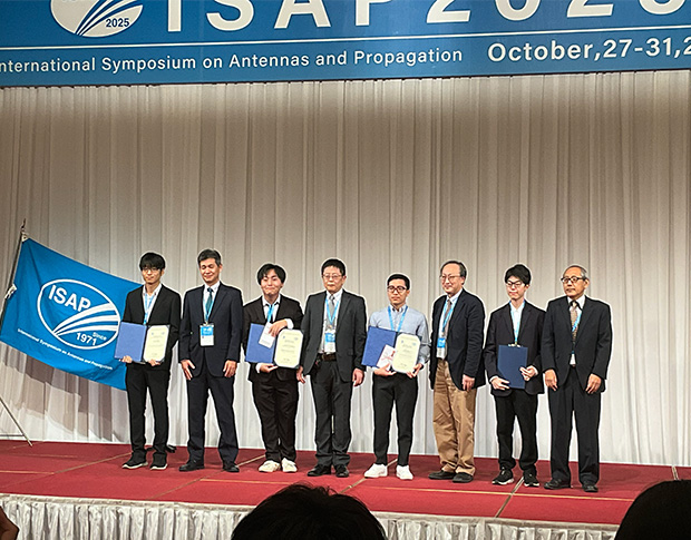 木寺正平研究室の石岡慧大さん(情報・ネットワーク工学専攻博士前期1年)と西村聡留さん(情報・ネットワーク工学専攻博士前期1年)および木寺正平教授(情報・ネットワーク工学専攻)の共著論文が、2025年10月27日(月)〜31日(金)に福岡市で開催された国際会議the 2025 International Symposium on Antennas and Propagation (ISAP2025)でBest Paper Awardを受賞しました。