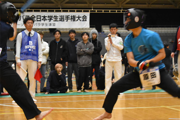 大学公認サークル スポーツチャンバラ同好会の渡辺謙信さん(Ⅰ類(情報系)1年)と原田拓実さん(Ⅲ類(理工系)1年)が、2025年12月13日(土)、14日(日)に開催された日本スポーツチャンバラ学生連盟主催「第32回スポーツチャンバラ全日本学生選手権大会」に出場し、渡辺さんは新人男子小太刀で優勝およびグランドチャンピオン戦に出場、原田さんは新人男子長剣両手で敢闘賞を受賞しました。