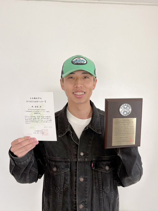 守裕也研究室の岡勇樹さん(機械知能システム学専攻博士前期2年)が、 2025年9月24日(水)~26日(金)に信州大学工学部で開催された日本機械学会 第38回計算力学講演会(CMD2025)において、岡さんの発表とその内容が評価され、2025年11月6日(木)に若手優秀講演フェロー賞を受賞しました。