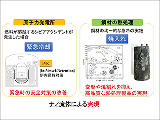 実際に、高い発熱を起こすスマートフォン内部のヒートパイプやスーパーコンピュータ内のCPU、電気自動車のインバータなどの冷却のほか、鋼材の熱処理時の均一な急冷、原子炉の緊急冷却などを目指したナノ流体の応用研究も手がけています。特に、電子機器は小型化や高性能化に伴ってより高効率の冷却技術が求められており、今後そのニーズはますます高まるに違いありません。