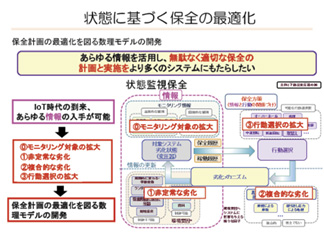 保全には大きく「予防保全」と「事後保全」の2種類があります。予防保全は故障のメカニズムや劣化の速度などに基づき、事前に行う保全です。一方、事後保全は故障や事故など不具合が発生した後に行う保全です。予防保全を頻繁に行えば事後保全を減らすことができますが、その分、保全コストは上がります。「予防保全と事後保全のバランスを考慮しつつ、対象システムのデータなどに基づいて保全の実施時期や内容を決める“意思決定”が重要になる」と金准教授はいいます。